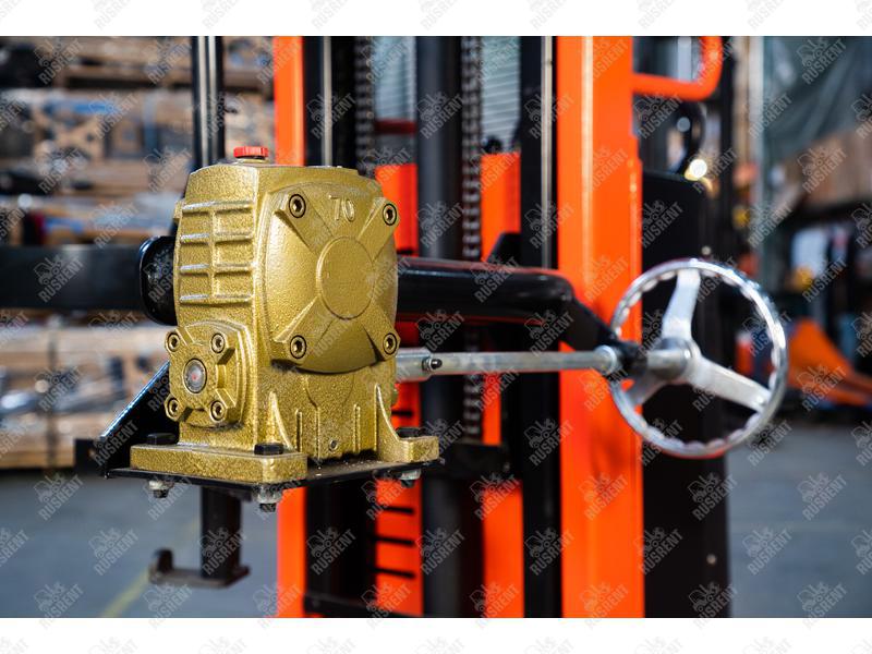 Подъём груза осуществляется гидравлической системой с электроприводом. Штабелёры оборудованы мощными электромоторами, которые помогают быстро и без излишних усилий со стороны оператора справляться со своей задачей. А это существенно уменьшает время обработки грузов. Аккумулятор высокой ёмкости обеспечивает длительный период работы. А при необходимости, его легко подзарядить.