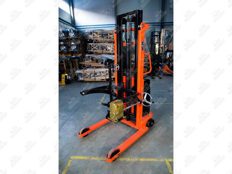 Закрепление бочек производится крюком за кант бочки. При этом бочка надежно фиксируется сверху и снизу, что исключает её срыв. Для вращения, как правило, используется надежный и простой червячный редуктор. Бочка может вращаться на 360 градусов, если этому не препятствует её размер. Высота подъема достаточна для работы на нескольких уровнях склада.