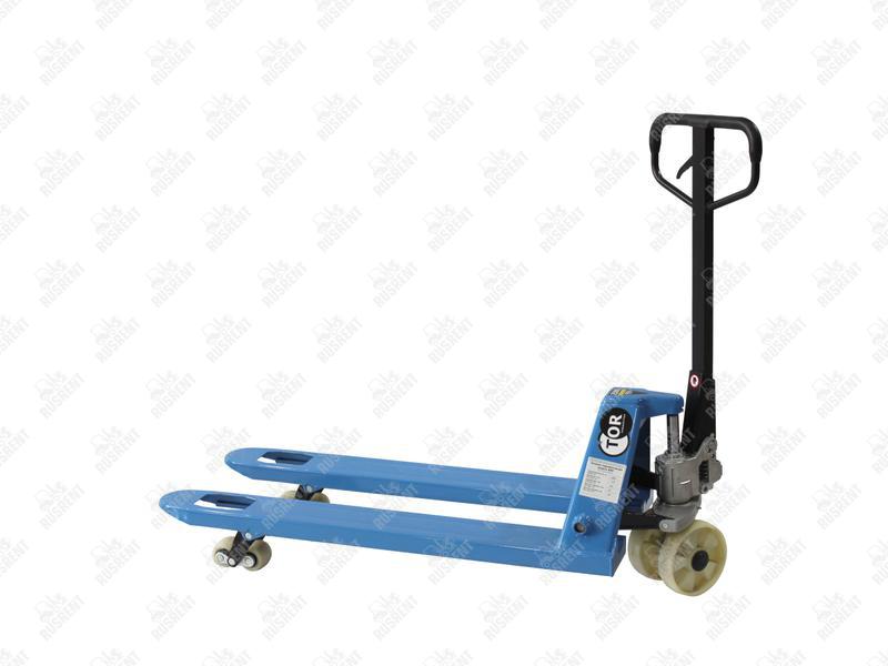 Тележка гидравлическая TOR RHP(BF) (нейлоновые колеса) с длиной вил 1 150 мм имеет грузоподъемность 2 500 кг. Усиленные вилы значительно увеличивают срок службы тележки. Если вы постоянно работаете с тяжелыми грузами, то выбрать стоит эту тележку. Грузоподъемность 2,5 т идеально подходит для обработки грузов на стандартных евро паллетах. Дорожный просвет в 32 мм позволяет не обращать внимания на небольшие неровности пола при перемещении грузов.