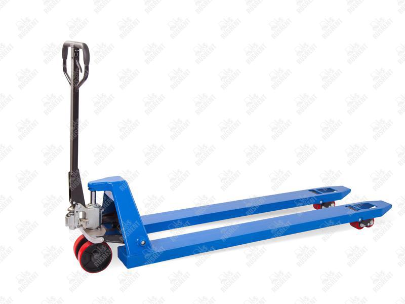Тележка гидравлическая TOR RHP(BF) (полиуретановые колеса) с длиной вил 1 800 мм имеет грузоподъемность 2 500 кг. Усиленные вилы значительно увеличивают срок службы тележки. Если вы постоянно работаете с тяжелыми грузами, то выбрать стоит эту тележку. Грузоподъемность 2,5 т идеально подходит для обработки грузов на стандартных евро паллетах. Дорожный просвет в 32 мм позволяет не обращать внимания на небольшие неровности пола при перемещении грузов.