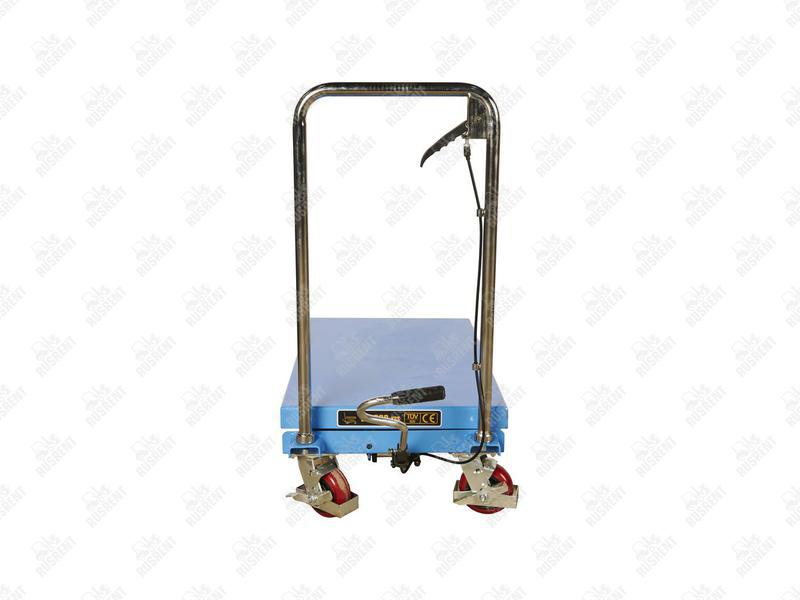 Данная модель подъемного стола поставляется с окрашенными металлическими деталями и хромированной рукояткой. Подъемник легко управляется, удобен в маневрировании. Такая техника предназначена для работы в складских помещения, торговых павильонах, производственных предприятиях и цехах для транспортировки коробок, инструментов и прочих грузов.