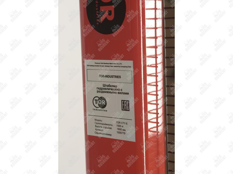 Штабелер гидравлический TOR CTY-E — модель с раздвижными вилами. Эта модель имеет грузоподъемность 1,5 т и высоту подъема 1,6 м. Рекомендуется для использования на складах с низкой интенсивностью работ. Регулировка ширины вил от 320 до 870 мм облегчает обработку разных видов паллет, а так же дает возможность безопасно перемещать нестандартные грузы. Рекомендуется для использования на складах с низкой и средней интенсивностью работ.