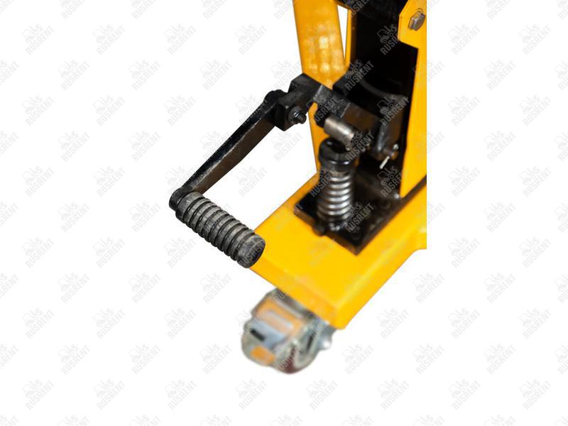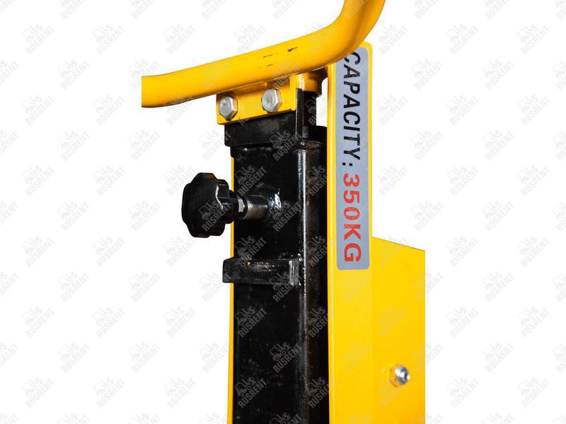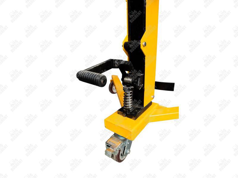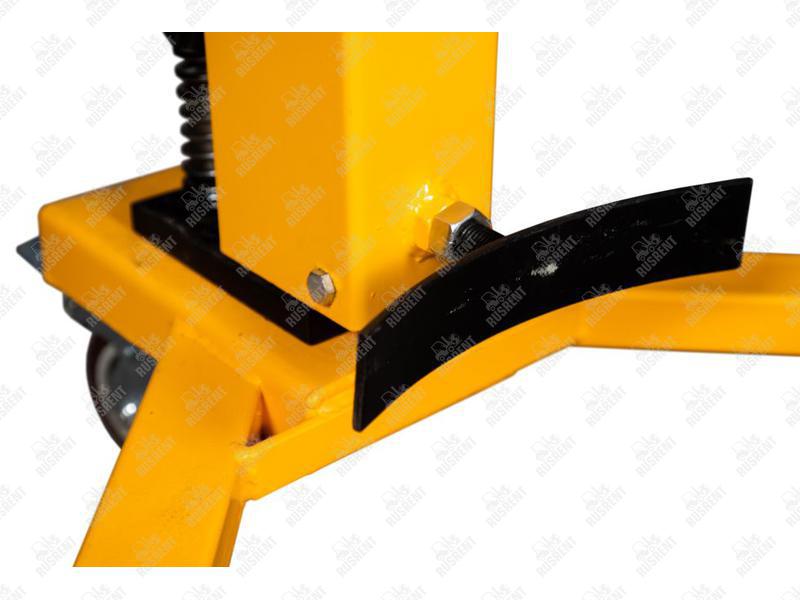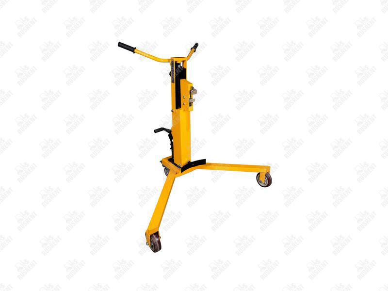 Тележка для бочек TOR DT350B, 350 кг состоит из следующих элементов: металлическая прочная рама, ручки для управления тележкой, гидравлический насос подъема, ножная педаль подъема, упор для бочки, автоматический замок захвата бочки за верхнюю кромку, 3 колеса (рулевое колесо с тормозом). Высота подъема бочки 300 мм, что позволяет работать с любыми паллетами. Диаметр бочки до 590 мм.