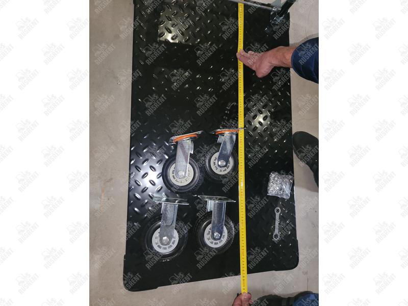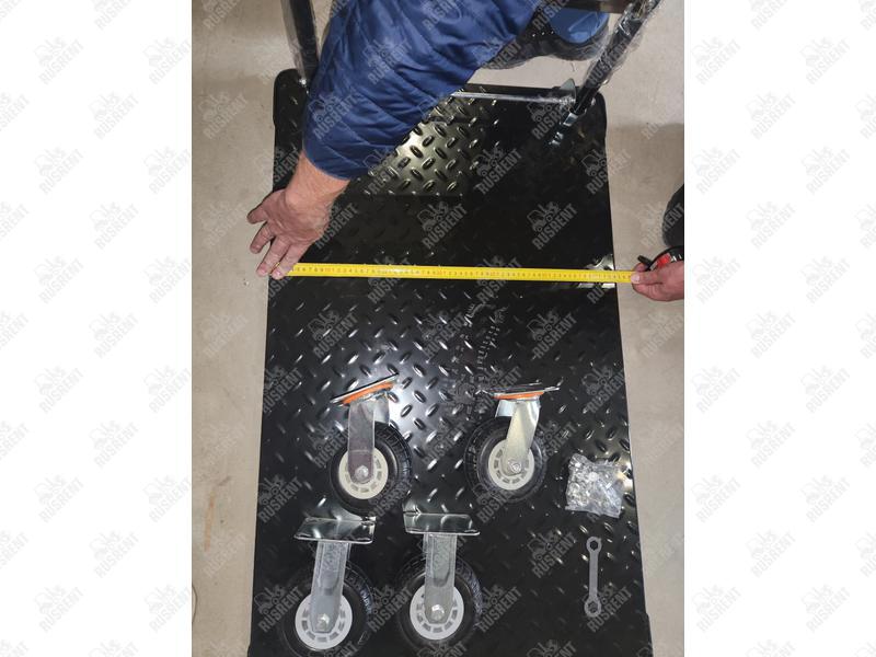 Тележка платформенная TOR PH950 (резиновые колеса) состоит из металлического каркаса, металлической ручки, платформы с защитным покрытием и колес. Грузоподъемность составляет 950 кг, диаметр колес 125 мм.
