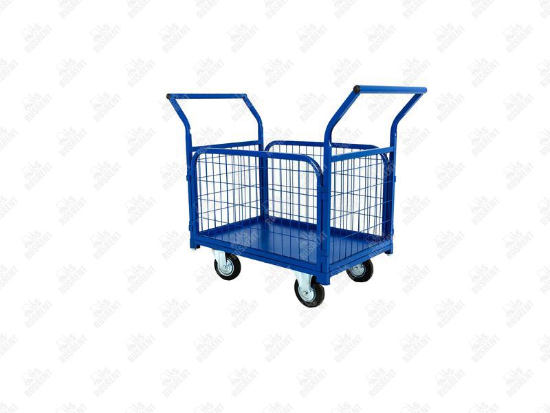 Тележка платформенная TOR ТП-2С (600×900) с бортами из сетки и двумя ручками (колеса 160 мм) востребована в условиях склада, магазина. Позволяет перевозить грузы небольшого веса. Платформа изготавливается из надежного металлопроката, выдерживает распределенную и точечную нагрузку. Также в конструкцию входят: ручка управления, 4 колеса, металлическая рама.