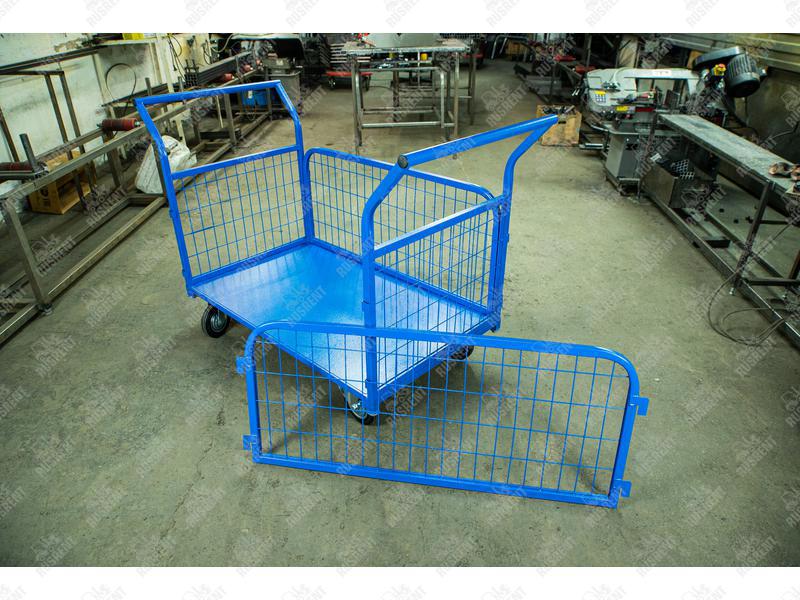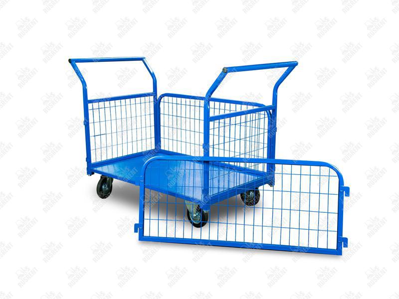 Тележка платформенная TOR ТП-3С (700×1200) с бортами из сетки и двумя ручками (колеса 160 мм) востребована в условиях склада, магазина. Позволяет перевозить грузы небольшого веса. Платформа изготавливается из надежного металлопроката, выдерживает распределенную и точечную нагрузку. Также в конструкцию входят: ручка управления, 4 колеса, металлическая рама.