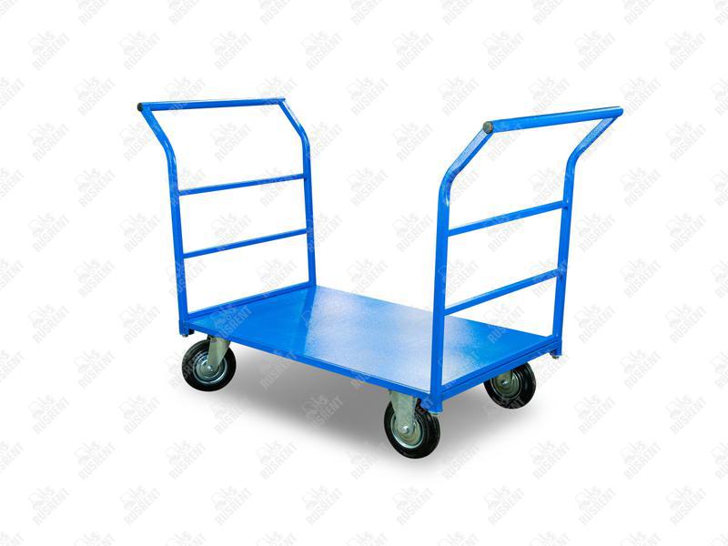 Тележка платформенная TOR ТП-Д (700×1200) с двумя ручками (с колесами) востребована в условиях склада, магазина. Позволяет перевозить грузы небольшого веса. Платформа изготавливается из надежного металлопроката, выдерживает распределенную и точечную нагрузку.