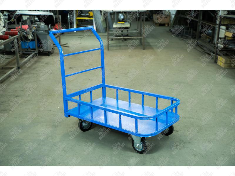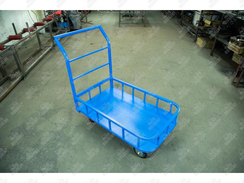 Тележка платформенная TOR ТП-МБ (600×1000) с бортами (колеса 160 мм) востребована в условиях склада, магазина. Позволяет перевозить грузы небольшого веса. Платформа изготавливается из надежного металлопроката, выдерживает распределенную и точечную нагрузку. Также в конструкцию входят: ручка управления, 4 колеса, металлическая рама.