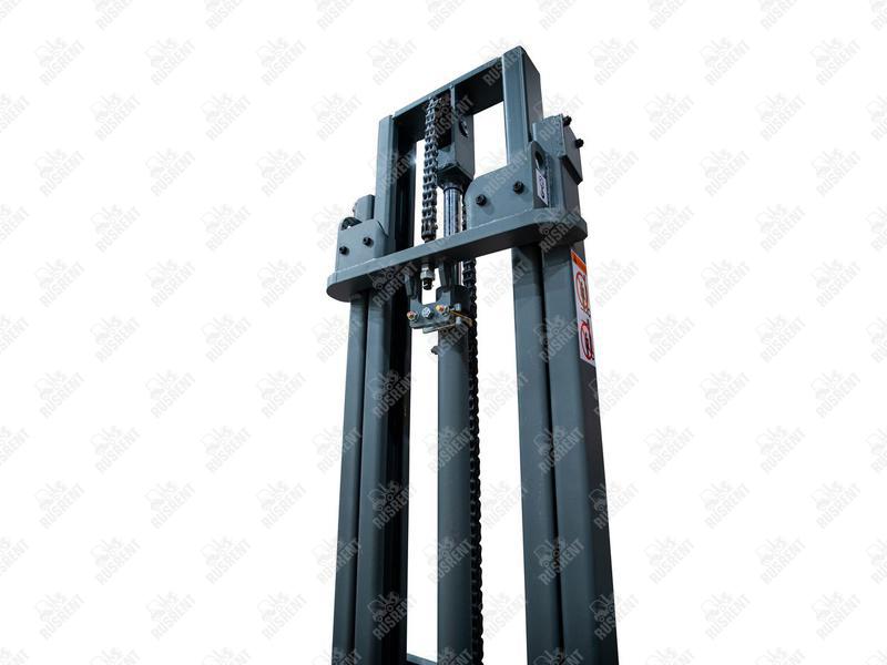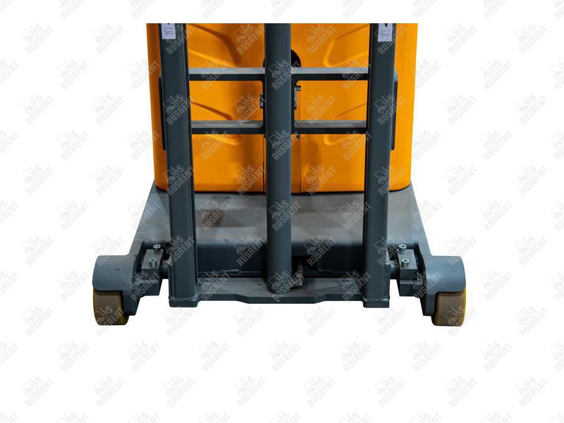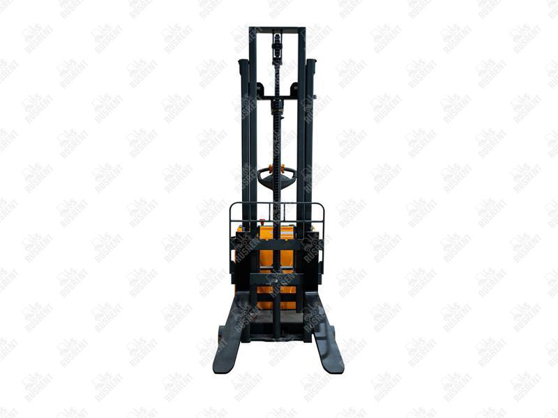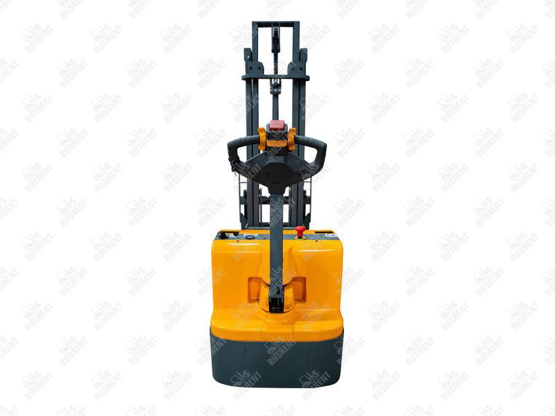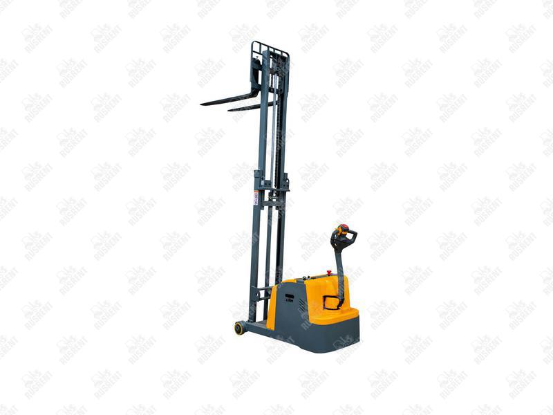 Данный штабелёр работает от электричества не только на подъём, но и на передвижение в горизонтальной плоскости. Обладает лёгким и удобным управлением, высокой манёвренностью.