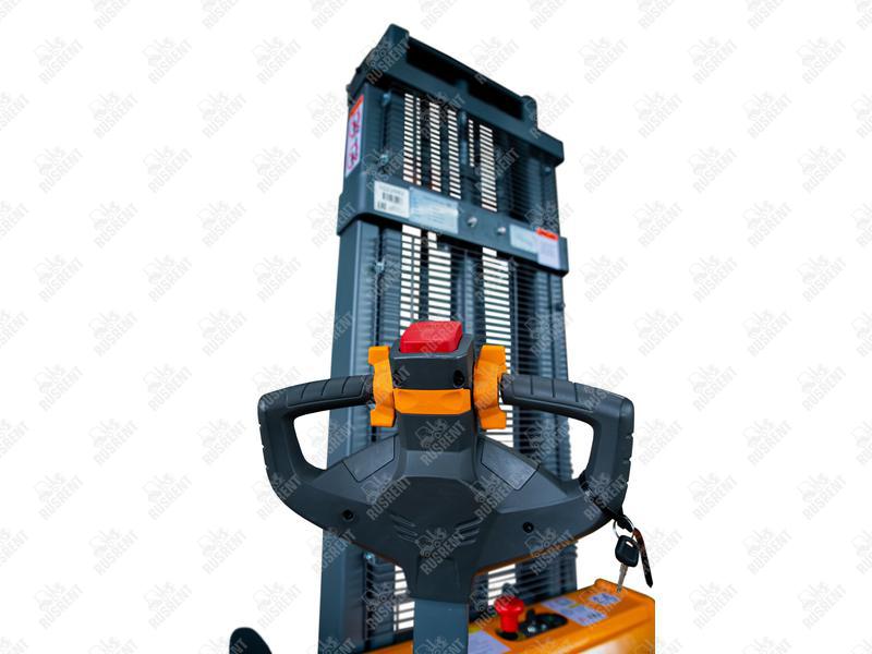 Эргономичная ручка управления с дублированными кнопками спуска-подъёма обеспечит лёгкость управления. Кнопка экстренной остановки и аварийный реверс помогут избежать аварий, повреждений и травм. Этому же способствует надёжный электромагнитный тормоз и радиус обзора, минимизирующий количество слепых зон. Благодаря полной электрификации, оператор затрачивает минимальные усилия, просто сопровождая штабелёр в процессе работы. Ролики с полиуретановым покрытием делают процесс передвижения плавным, к тому же — не оставляют следов на напольном покрытии. Продуманная конструкция с низким центром тяжести и опора на 4 точки обеспечивают баланс высокой устойчивости и эффективной скорости передвижения. Кстати, скорость перемещения грузов в вертикальной плоскости также находится на достойном уровне производительности.