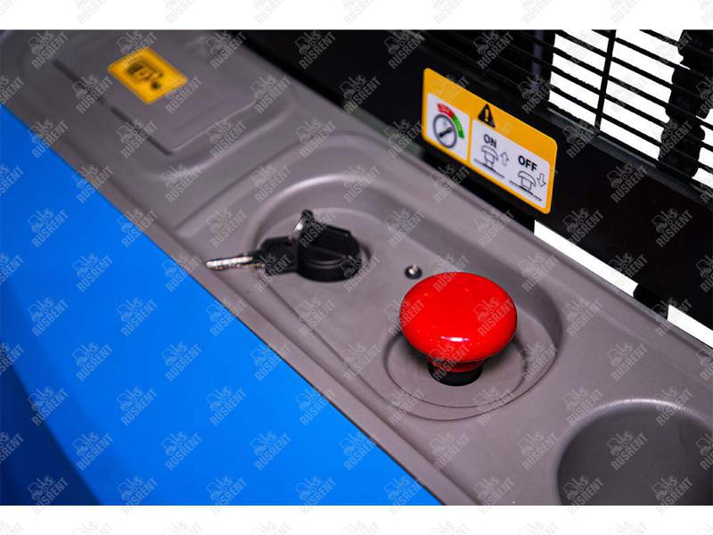 Известные проблемы с резким стартом двигателей подъема и сложность — в связи с этим плавно и безопасно опустить груз решено с помощью плавного пуска, управление плавным спуском/подъёмом встроено в ручку. Также при опускании груза на землю на уровне 10 см штабелер автоматически снижает скорость опускания вил, что предотвращает риски повреждений при работе с хрупким грузом. За безопасность оператора отвечает установка датчика на уровне 600 мм. При поднятых вилах до этого уровня штабелер автоматически замедляет скорость передвижения, что удобно при позиционировании груза. В остальном это классический штабелер лёгкого класса, который эффективно работает на небольших складах и магазинах за счет небольших габаритов и маневренности.