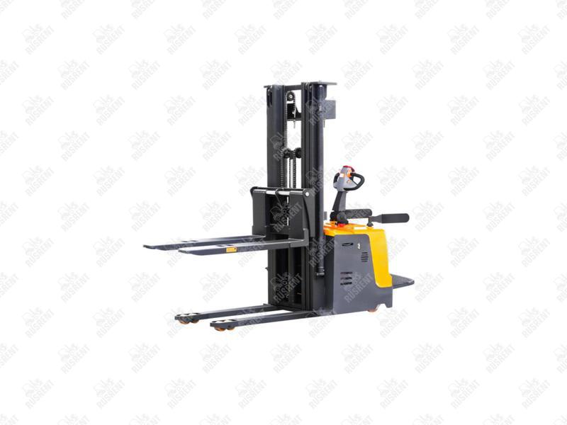 Штабелер оснащен свинцово-кислотной батареей с параметрами 24/210 В/Ач. В конструкции обычно применяется усиленная Н-образная или С-образная мачта, обеспечивающая устойчивость на максимальной высоте. Наличие полноценной платформы для оператора повышает производительность при частых перемещениях между зонами складирования, но требует соблюдения правил техники безопасности при движении задним ходом. Такие модели часто используются для среднетоннажного складирования на высоте до третьего-четвертого яруса.
