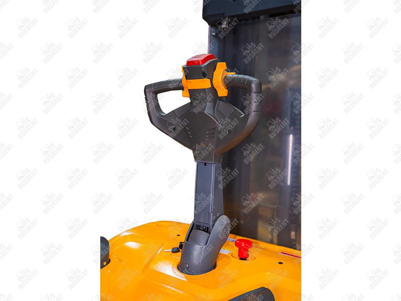 — Аварийное устройство реверсивного движения (если красная кнопка на рычаге управления упрется в человека или препятствие, штабелер автоматически откатится назад);