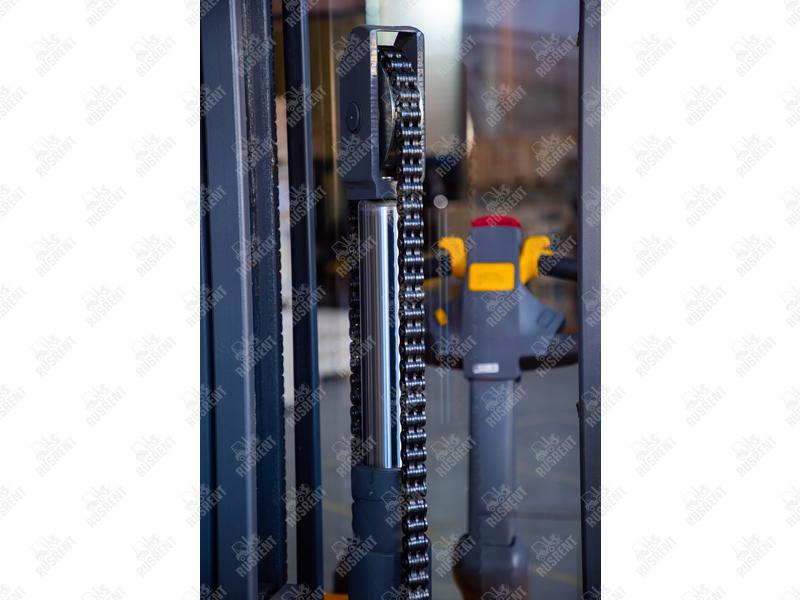 — Аварийное устройство реверсивного движения (если красная кнопка на рычаге управления упрется в человека или препятствие, штабелер автоматически откатится назад);