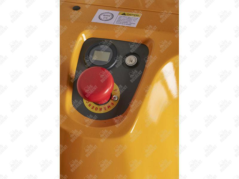 — Аварийное устройство реверсивного движения (если красная кнопка на рычаге управления упрется в человека или препятствие, штабелер автоматически откатится назад);
